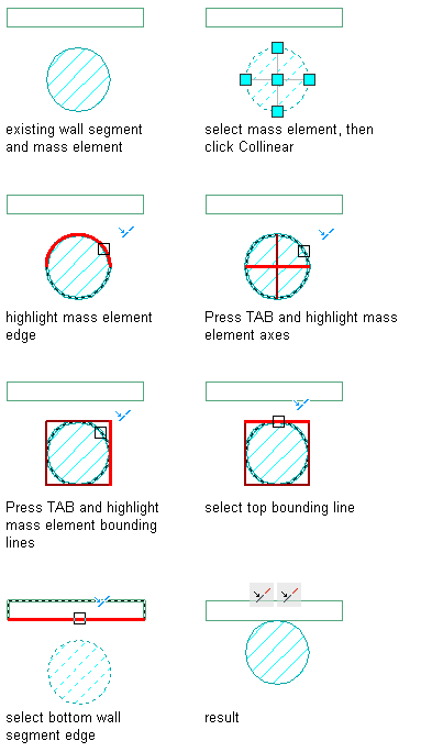 Use a Collinear constraint to align the edge of a mass element with the edge of a wall segment.