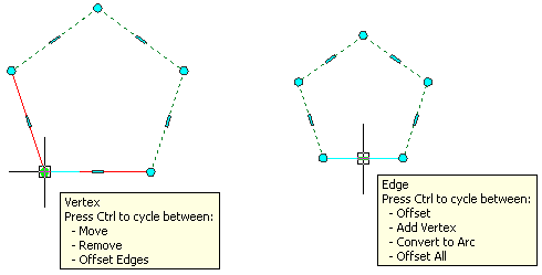 • Grips: Select the vertex grip which you want to offset with its associated edges. Then, press Ctrl twice and drag the vertex to the desired location.