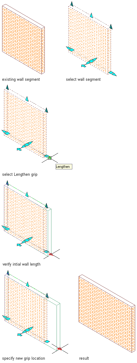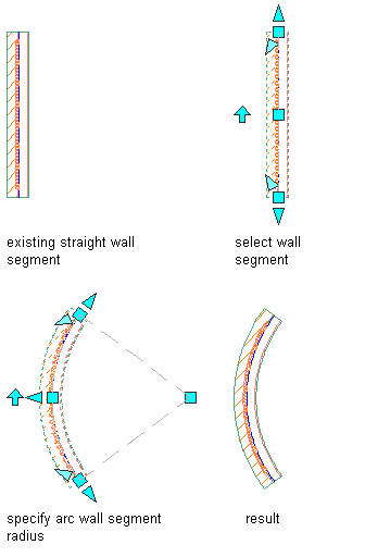 When you change a curved wall to a straight wall, the software creates a straight segment between the start and endpoints of the curve. You can use grips to adjust the length and location of the wall.