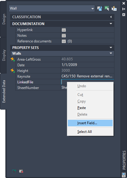 11. Double-click the object in the drawing, and on the Extended Data tab of the Properties palette, click .