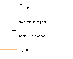 Specify the post orientation relative to the up and down directions on a stair run in elevation view as shown in the following illustration: