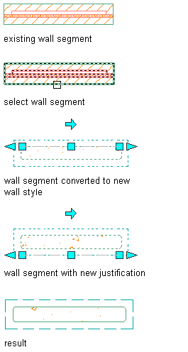 Use this procedure to modify one or more walls by applying the properties of a wall tool. The properties include the wall style and any other settings specified in the tool you select.