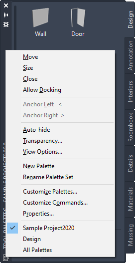 To open the tool palettes, set, click Home tabBuild panelTools drop-downDesign Tools.