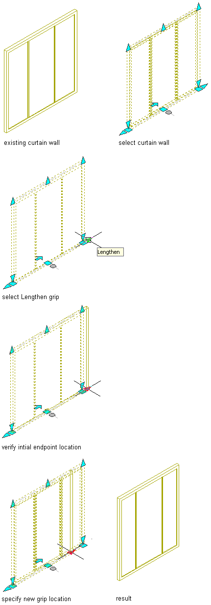 - Select the Lengthen grip, move the grip until the length value you want is displayed, and click once.