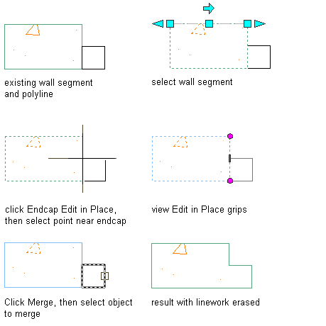 Use this procedure to modify a wall endcap by merging a profile with a component. A profile may be any polyline-enclosed area that overlaps or is coincident with a specific component.