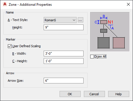 Note: To apply your changes to all zones in the drawing, select Drawing default setting. To apply changes to all zones of this style, select Zone Style:<style name>.
