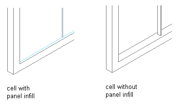Use this procedure to remove the infill of a cell and leave the cell empty. To do this, use None as the element definition. Using None also removes any frame edges that border the cell, but it does not affect the mullions.