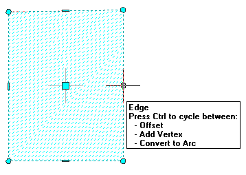 Convert to Arc changes the selected edge to an arc and stretches the midpoint of the edge. The edge grip for an arc also has a Stretch mode, so that you can stretch the midpoint of the edge after it has been converted to an arc.