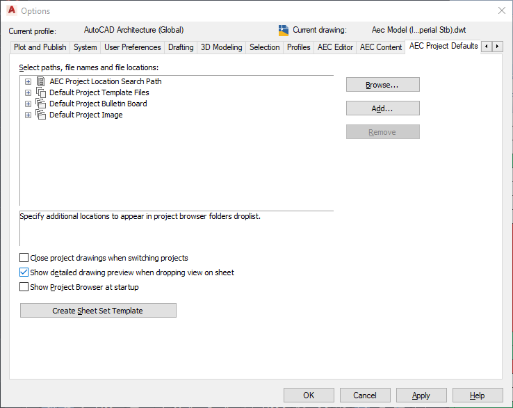 Use this procedure to set the default options for your AutoCAD Architecture 2027 toolset projects. The following options can be specified for projects: