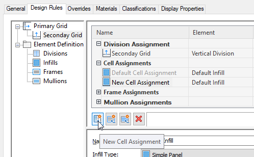 5. In the left pane, select the grid in which you want to put a simple panel infill.
