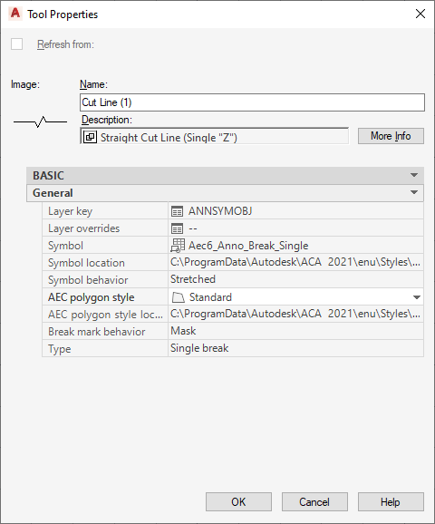 | AEC polygon style | Specifies whether the break mark has masking properties. If this property is unspecified (--), the style defaults to the standard style. |