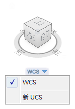 UCS 功能表位於 ViewCube 下方,會顯示模型中目前 UCS 的名稱。使用該功能表,您可以還原其中一個與模型一起儲存的具名 UCS、切換至 WCS 或定義一個新 UCS。使用功能表上的「WCS」項目,您可以將座標系統從目前的 UCS 切換至 WCS。使用「新 UCS」,您可以根據一點、兩點或三點旋轉目前的 UCS,以定義新 UCS。按一下「新 UCS」時,會定義一個新 UCS,其預設名稱為「未具名的」。若要使用名稱儲存定義的新 UCS,請使用 UCS 指令的「具名」選項。