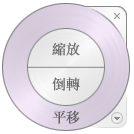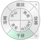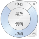SteeringWheels 是追蹤功能表,被分為不同的區域 (稱為楔形塊按鈕)。每個楔形塊按鈕代表一個導覽工具。