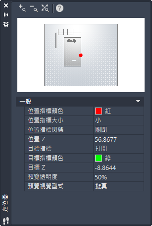 指定目標位置指示標的 Z 座標。您可以在繪製區中指定一點或輸入一個新值,以修改此設定。