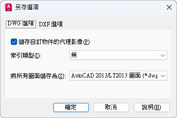 「DWG 選項」頁籤 (「另存選項」對話方塊)