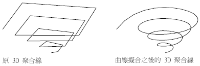 將 3D B - 雲形曲線在其控制點擬合。SPLFRAME 系統變數會控制 3D B - 雲形曲線控制點的精確度及顯示,而其曲線僅能使用線段才能變為近似。忽略雲形線段的負值。