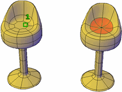 指定網面邊或面,環繞的面將收斂至所指定邊或面的中點。按一下單一網面邊或面。