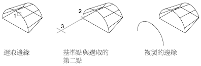 您可以複製 3D 實體物件上個別的邊。邊會被做為線、弧、圓、橢圓或雲形線複製。