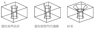 使用 FILLETEDGE 和 CHAMFEREDGE 為 3D 實體的邊加上圓形、圓角或斜切 3D 實體的邊
