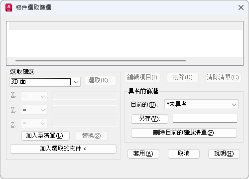 選取、編輯與命名物件選取篩選。