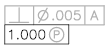 在特徵控制框中建立投影公差區域值。投影公差區控制固定互垂元件延伸部份的高度變動,使公差精細化,成為位置公差指定的公差。