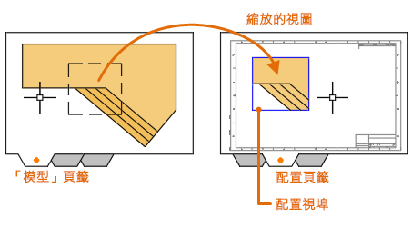 配置視埠是顯示模型空間視圖的物件。您可以建立、調整比例,並將其放在配置的圖紙空間中。