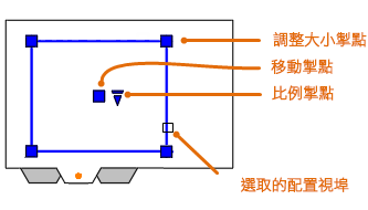 在您建立配置視埠之後,可以變更其大小和性質,也可以依需要調整比例和移動。