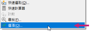 - 在「選項」對話方塊中,按一下「確定」。