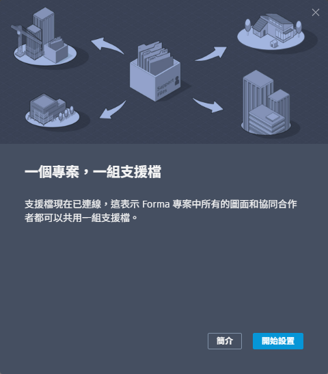 - 在「一個專案,一組支援檔」對話方塊中,按一下「開始設置」。