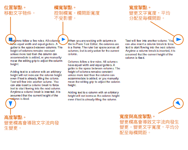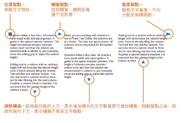 - 動態。 調整欄可影響文字流向,並且文字流向可導致欄被加入或移除。