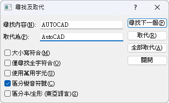 只尋找與「尋找內容」中指定的大小寫字元相符的文字。