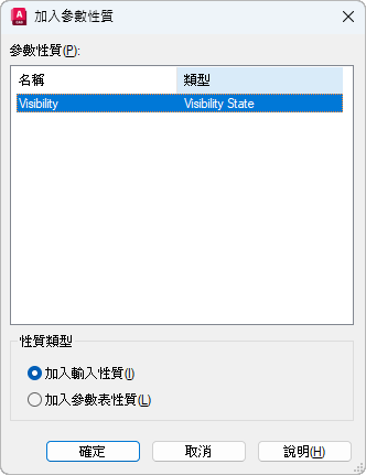 「加入參數性質」對話方塊