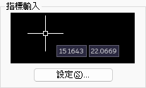 當指標 (游標) 輸入打開且指令正在進行中時,游標附近的工具提示輸入方塊中會顯示十字游標的座標位置。您可在工具提示 (非指令行) 中輸入座標。