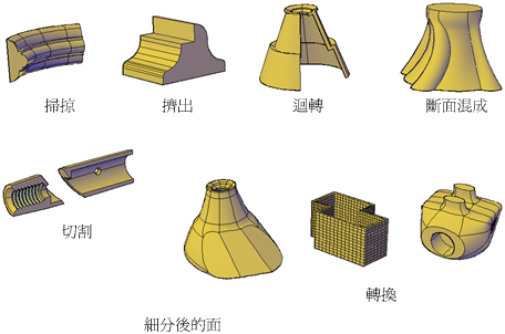 用來從其他幾何圖形建構曲面或實體的方法