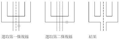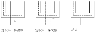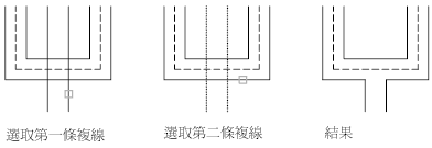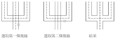 在兩條複線之間建立 T 型合併相交。修剪或延伸複線,直至與另一條複線相交。