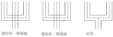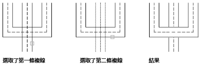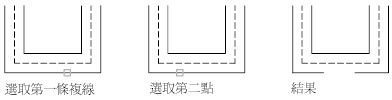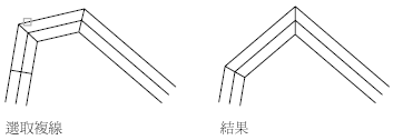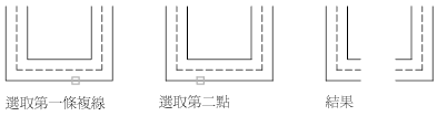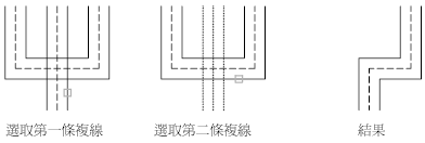 在複線之間建立轉角接合線。將複線修剪或延伸至相交之處。