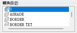 列示您可以將目前圖面中的圖層轉換到的圖層。