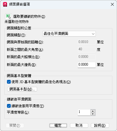 設定轉換後,是否平滑化新網面物件。
