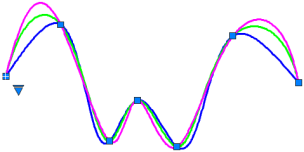 • 弦。(弦長方式) 排列與每條元件曲線相連的節點,使其和每對相關聯之擬合點間的距離成比例。插圖中的綠色曲線即為此例。
