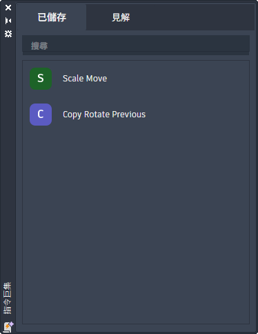 先前從「見解」頁籤儲存的指令巨集清單。