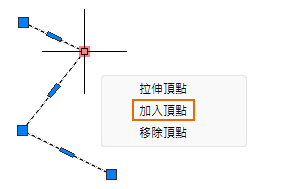 頂點會加到從所選端點掣點延伸的聚合線中。