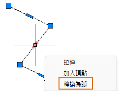 2. 將游標懸停在所要轉換線段中間的掣點。