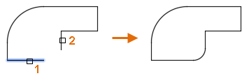 • 修剪。 選取的物件或線段將進行修剪以與圓角端點相符。