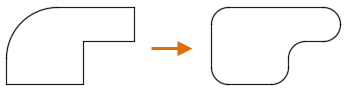 外圓角或圓角可以建立在具有相同或不同的物件類型的兩個物件之間:2D 聚合線、弧、圓、橢圓、橢圓弧、線、射線、雲形線和建構線。
