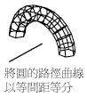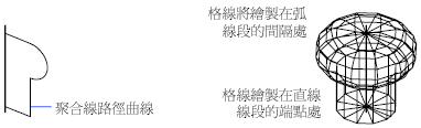 路徑曲線會繞著所選的軸掃掠,以定義該網面。路徑曲線可定義網面的 N方向。可選取圓或封閉聚合線做為路徑曲線,這樣可以在 N 方向上封閉網面。