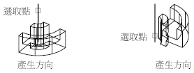選取線或開放 2D 或 3D 聚合線。軸方向不能與原始物件的平面平行。