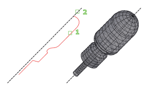 從聚合線第一個頂點到最後一個頂點的向量可決定旋轉軸。中間的任何頂點都會被忽略。迴轉軸決定網面的 M 方向。