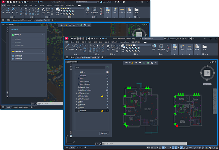 - 計算所有圖塊的實例數。使用「計數」選項板顯示和管理目前圖面中所有已計算的圖塊。