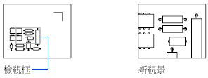 使用矩形檢視框平移和縮放。檢視框代表您的視圖,您可以縮小或放大它,以及繞著圖面移動。確定檢視框位置並調整其大小會進行平移或縮放,以使用檢視框中的影像來填滿視埠。不適用於透視投影。