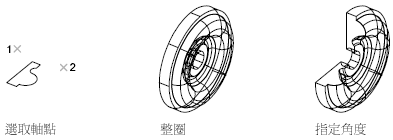 繞軸掃掠物件來建立 3D 實體或曲面。